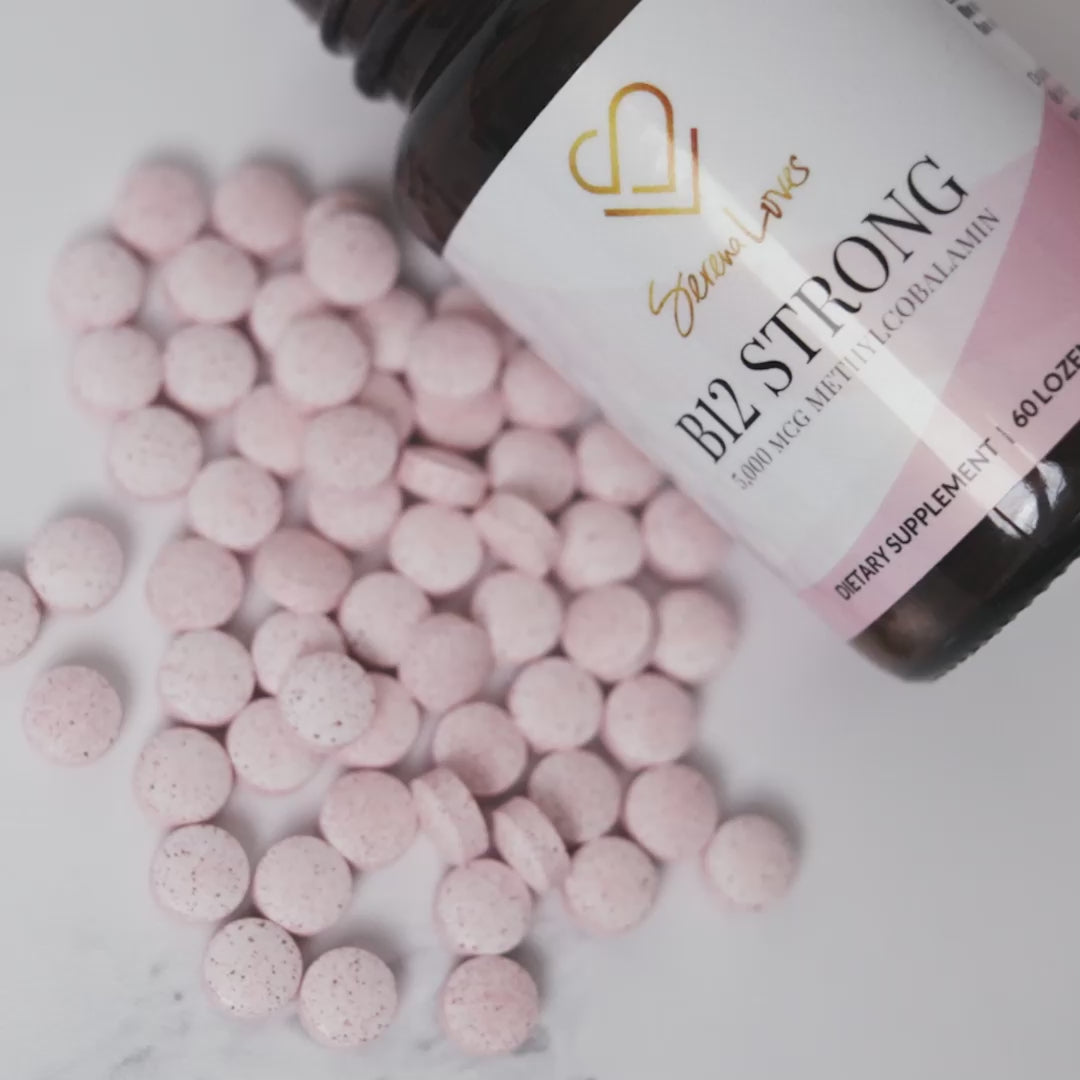 B12 is important for optimal energy levels, a healthy brain and nervous system, and DNA synthesis. B12 Strong lozenges dissolve in the mouth (let them dissolve, rather than chewing them!), allowing B12 to absorb into the bloodstream through the mucosa of the mouth, rather than relying entirely upon adequate absorption in the stomach.