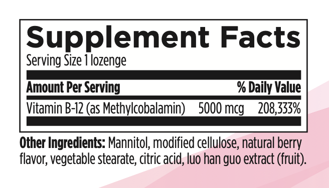 Recommended Use: Dissolve one lozenge in mouth per day. It is important to let the lozenge dissolve slowly and not chew it in order to allow the vitamin to be absorbed properly through the mucosal tissue that lines the mouth.