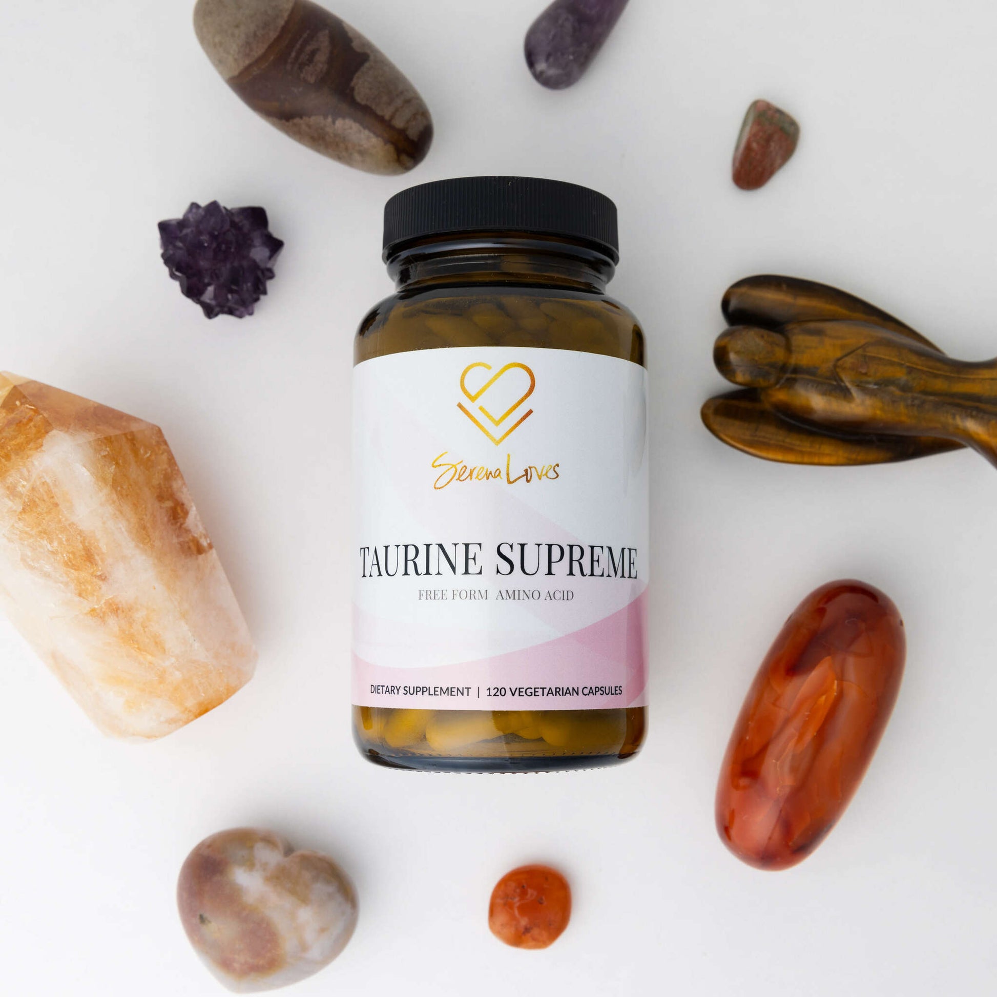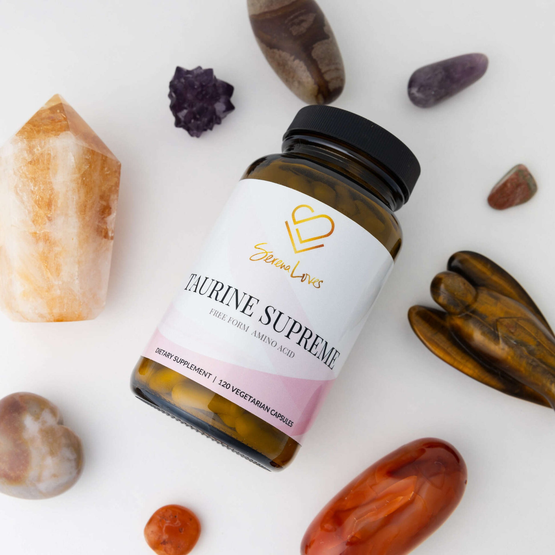 Our Taurine Supreme supplement delivers 1 gram of pure, free amino acid taurine powder per capsule, making it convenient for those who require higher amounts. Discover the heart-healthy benefits of our taurine capsules tablets, designed to support blood pressure, antioxidant defense, and energy in heart cells. This taurine supplement aids glucose metabolism and insulin sensitivity while acting as a natural diuretic to manage water balance. Essential for bile synthesis, our taurine supplement facilitates fat digestion and promotes robust skeletal muscle and nerve function. When you buy our taurine supplement, you invest in a non-GMO, gluten-free solution to support multiple facets of your health.