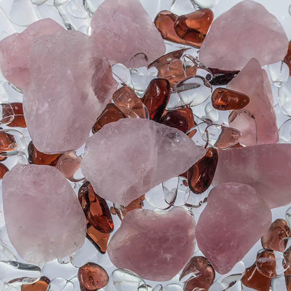 ROSE QUARTZ, GARNET, CLEAR QUARTZ